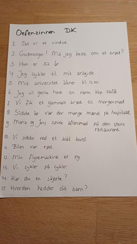 Iets waarvan ik 2,5 jaar geleden nooit zou hebben gedacht dat het zou gebeuren: ik geef Deense les aan Nederlanders! Een paar maanden geleden werd ik via deze site benaderd of ik dat zou kunnen en geheel in Pippi Langkousstijl dacht ik: ‘ik heb het nog nooit gedaan, dus ik denk dat ik het wel kan.’ Zodoende: Deense les. En dat is leuk! Uitdagend ook en dat is prima.